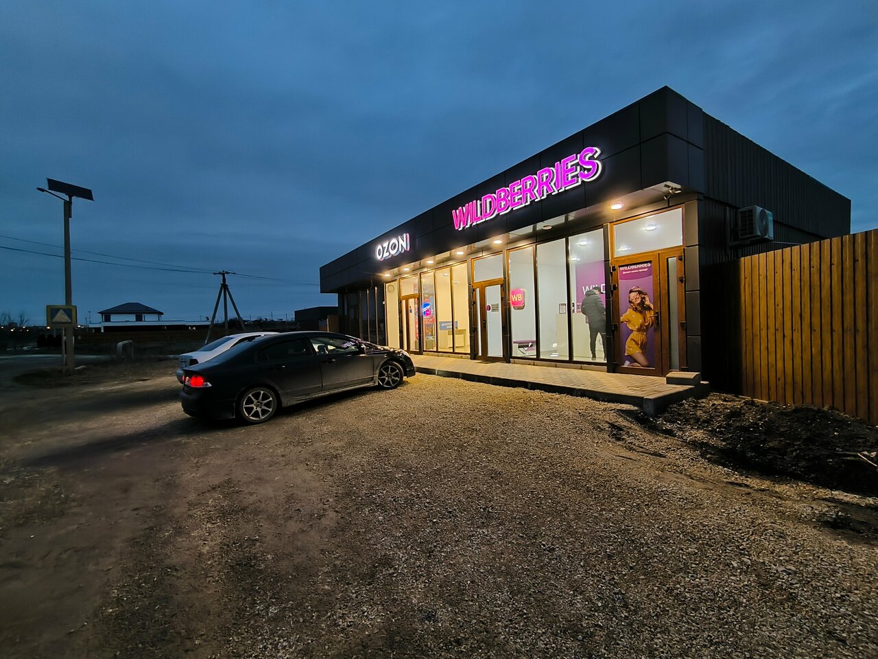 Хорошая большая стоянка у пункта выдочи . Вечером освещается . Очень удобно. Рекомендую .