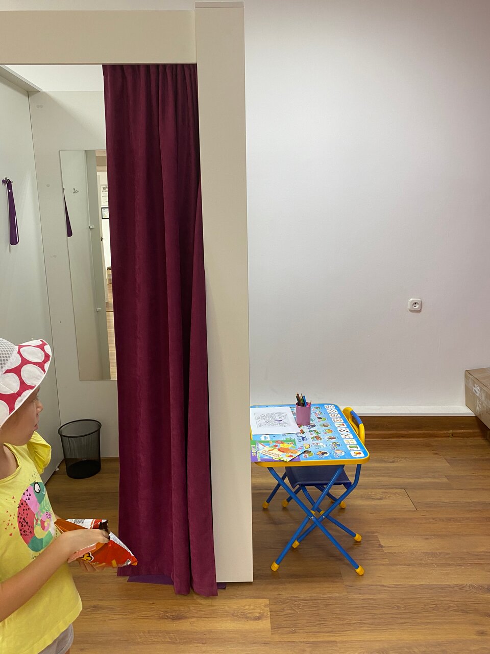 - Наличие детского уголка со столиком, раскрасками и карандашами