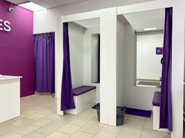 - Удобные кабинки для примерки.