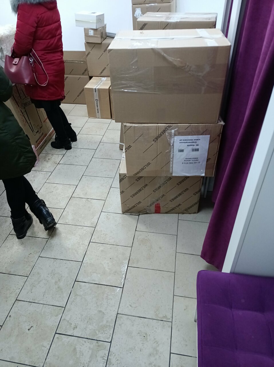 Маленькое помещение, коробки стоят возле стола ,возле примерочной и во всём этом бардаке,ты ждёшь по 10 минут и если повезёт,то сумеешь получить заказ.И соответственно скапливается очередь.Жалко сотрудников