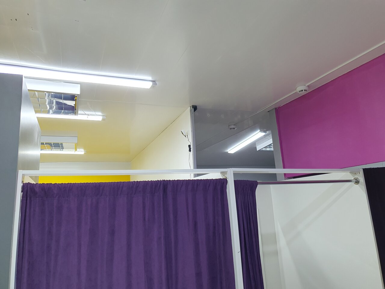 Маленькое помещение. Подход к примерочной завален коробками. Вечером темно на строительном рынке, найти сразу сложно.