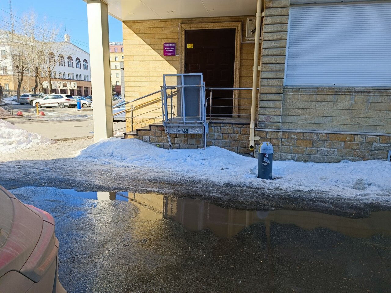 Прекрасный пункт выдачи. Всё всегда быстро и чётко. Захожу и через минутку уже свободна. Немного портит впечатление только лужа у ступеней. Надеюсь, что с ней что-нибудь придумают.