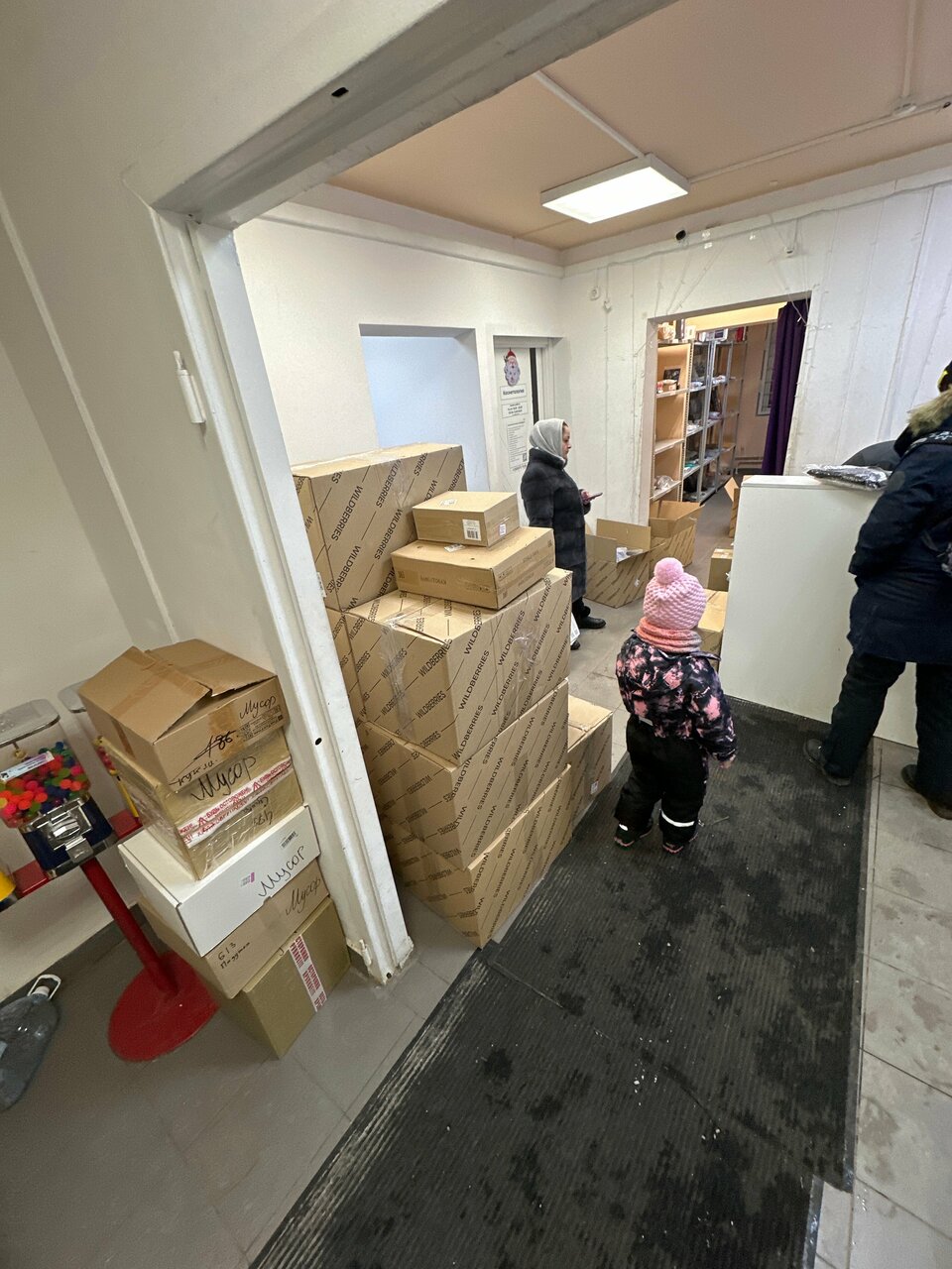 Пункт выдачи работает хорошо,но неприятно ,что пол нечистый,в кабинках всегда грязные коврики.Людям нужно объяснить,что на коврики в обуви нельзя вставать и ставить их сбоку ,у стенки.И только перед примеркой расстилать на полу,если это требуется.