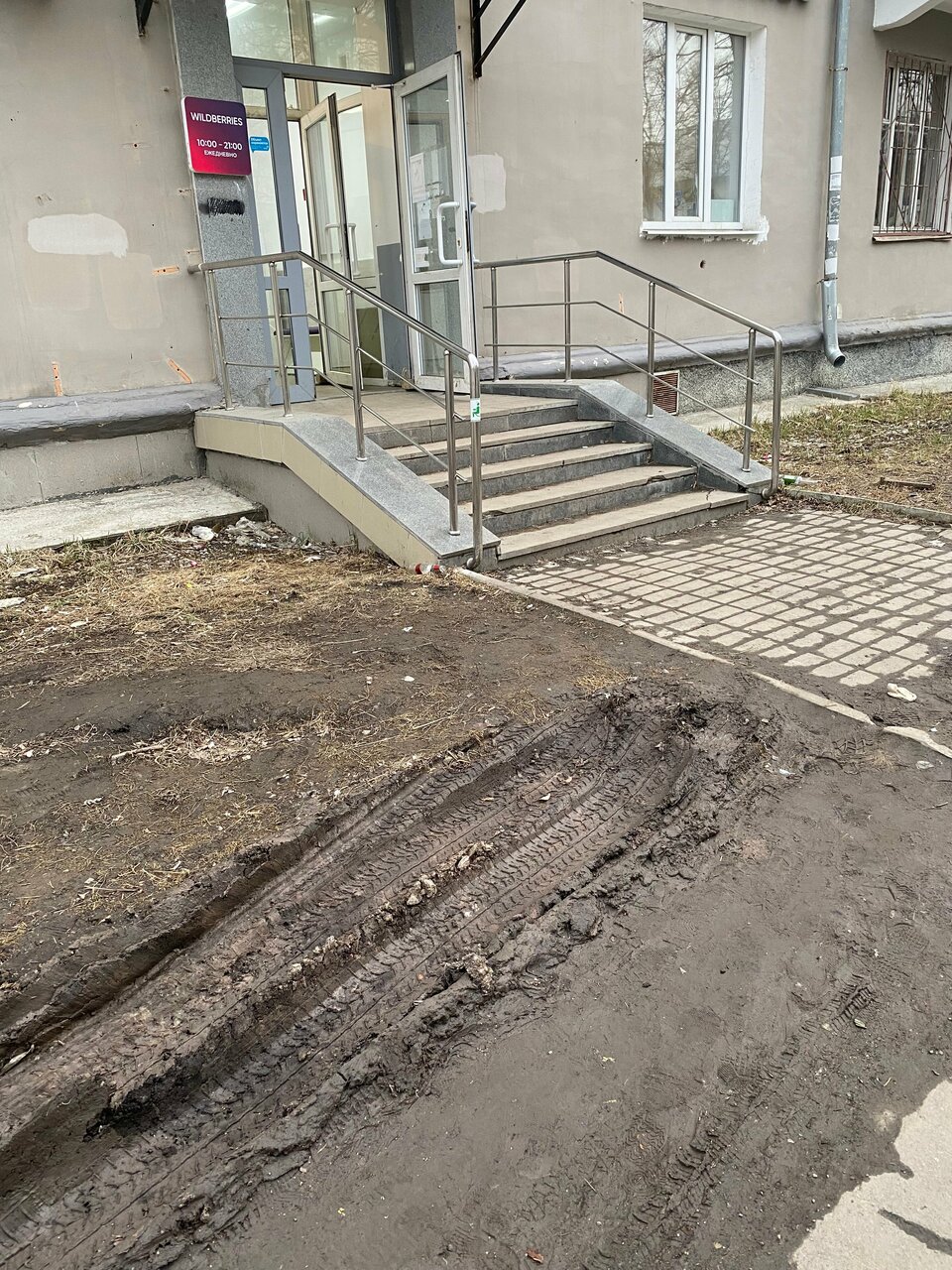 - Грязная территория возле входа (двери, полы) после дождя или зимы