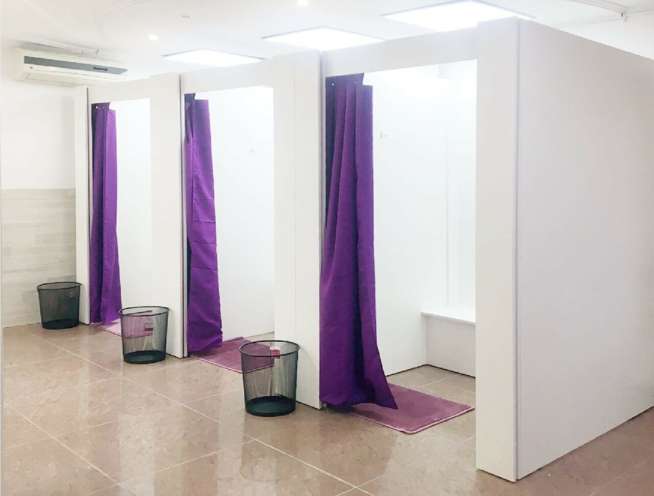 Удобно, рядом с домом. Практически никогда нет очереди, максимум 1 человек. Хорошо освещаемые кабинки, есть коврики и пуфик, очень удобно.
