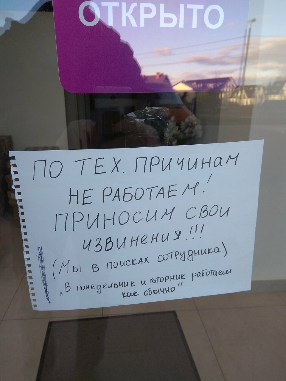 - Некомпетентность (оставление записки о закрытии на праздники)