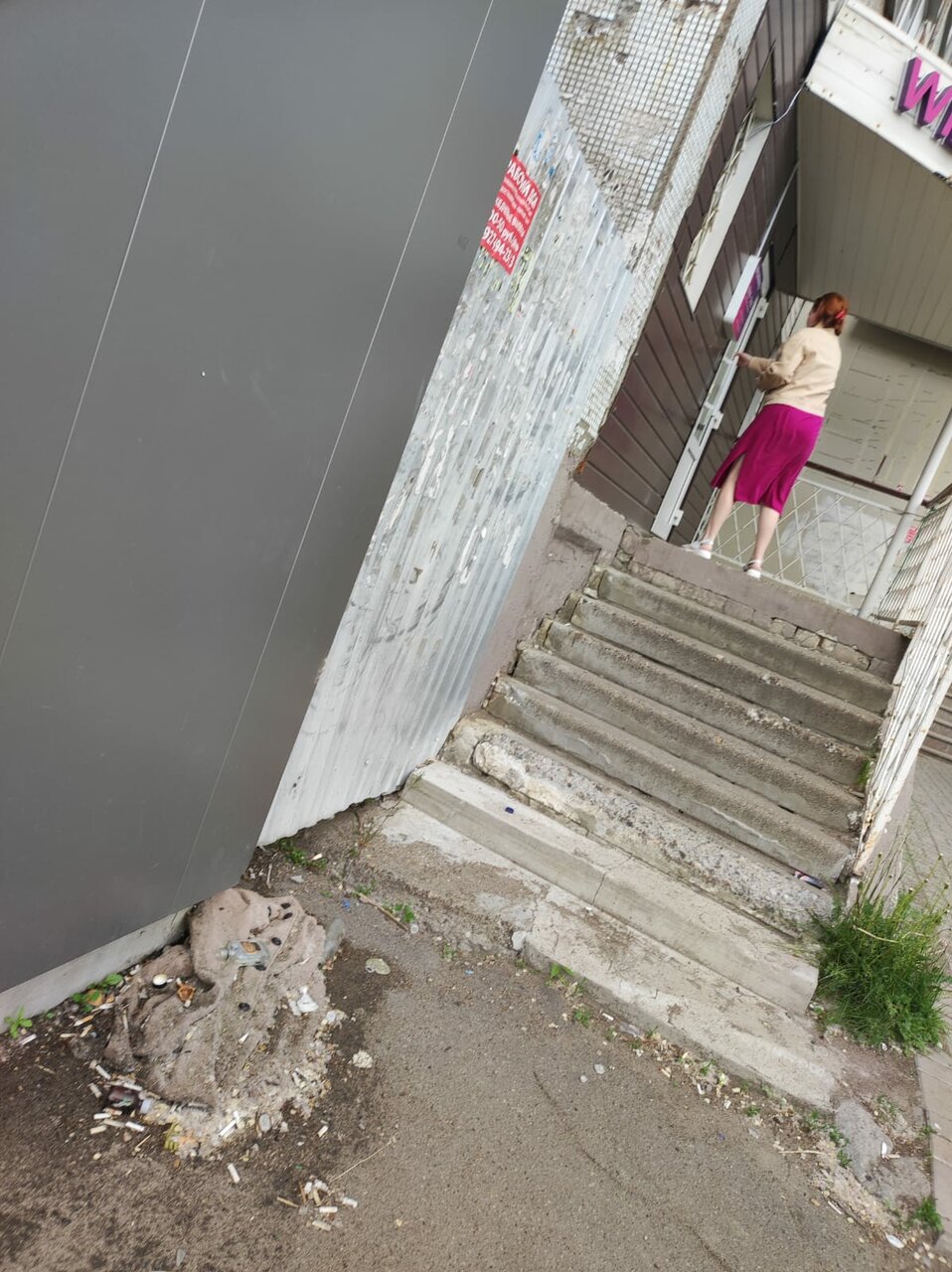 - Сильное загрязнение территории перед входом (грязь, окурки, бутылки)