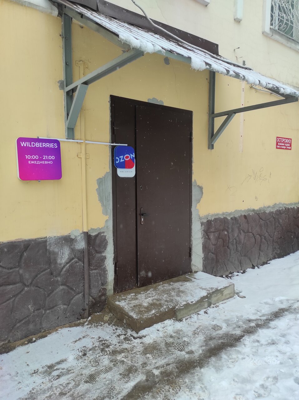 Крыльцо в намерзших кусках льда , заходить на ВБ очень не удобно, можно подскользнуться и упасть, травмироваться. Говорила сотрудникам , но ничего не меняется. Так и преодолеваем эти трудности каждый раз посещая ВБ.