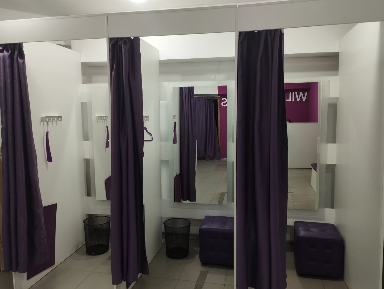 - Наличие трёх примерочных кабинок