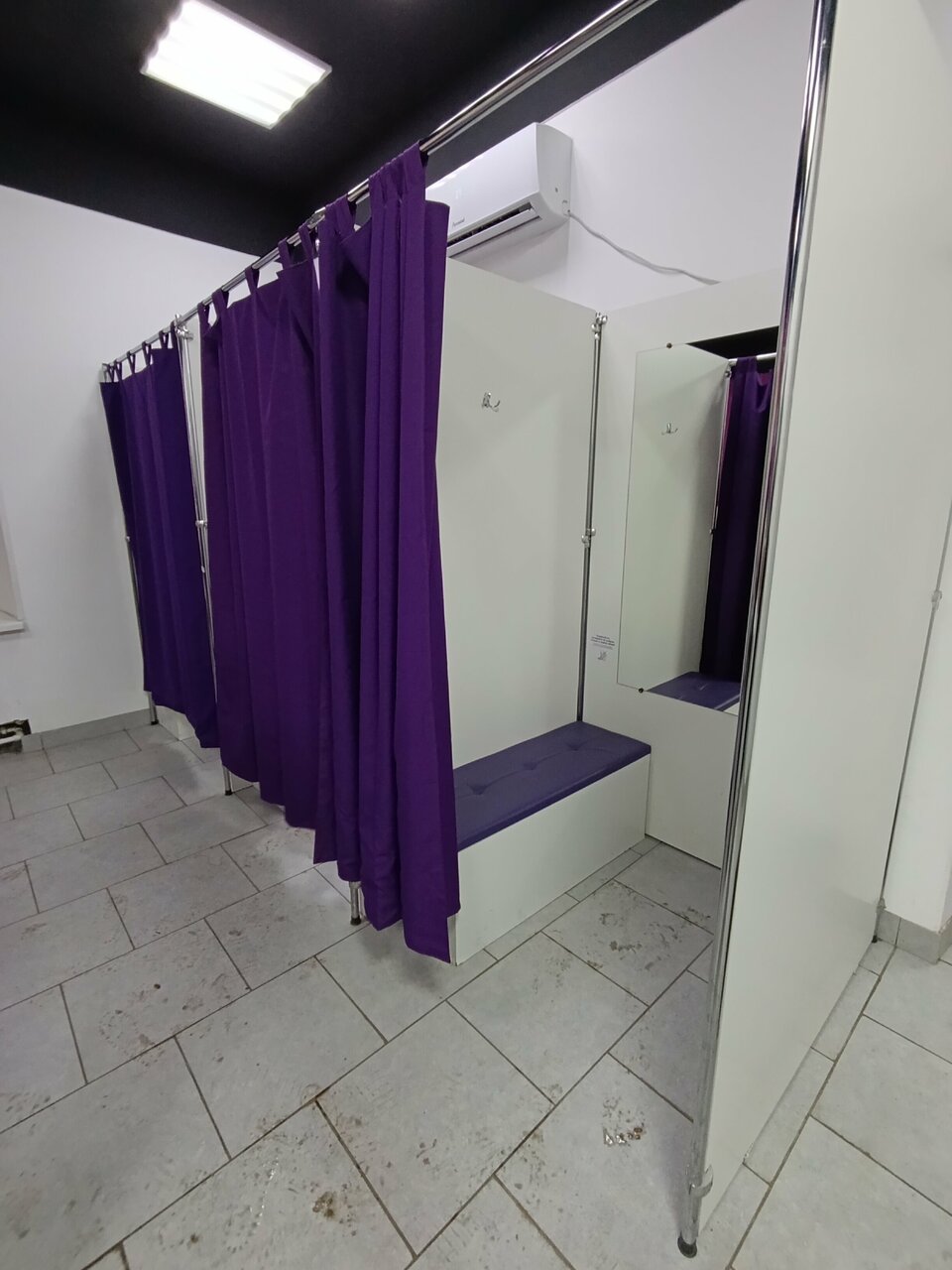- Наличие трех примерочных кабинок и пуфика для обуви