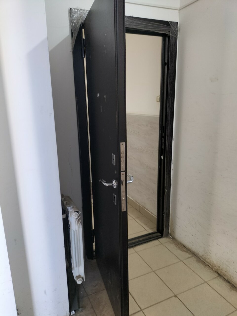 - Сильная грязь и беспорядок (валяются коробки, пленки, грязные полы)