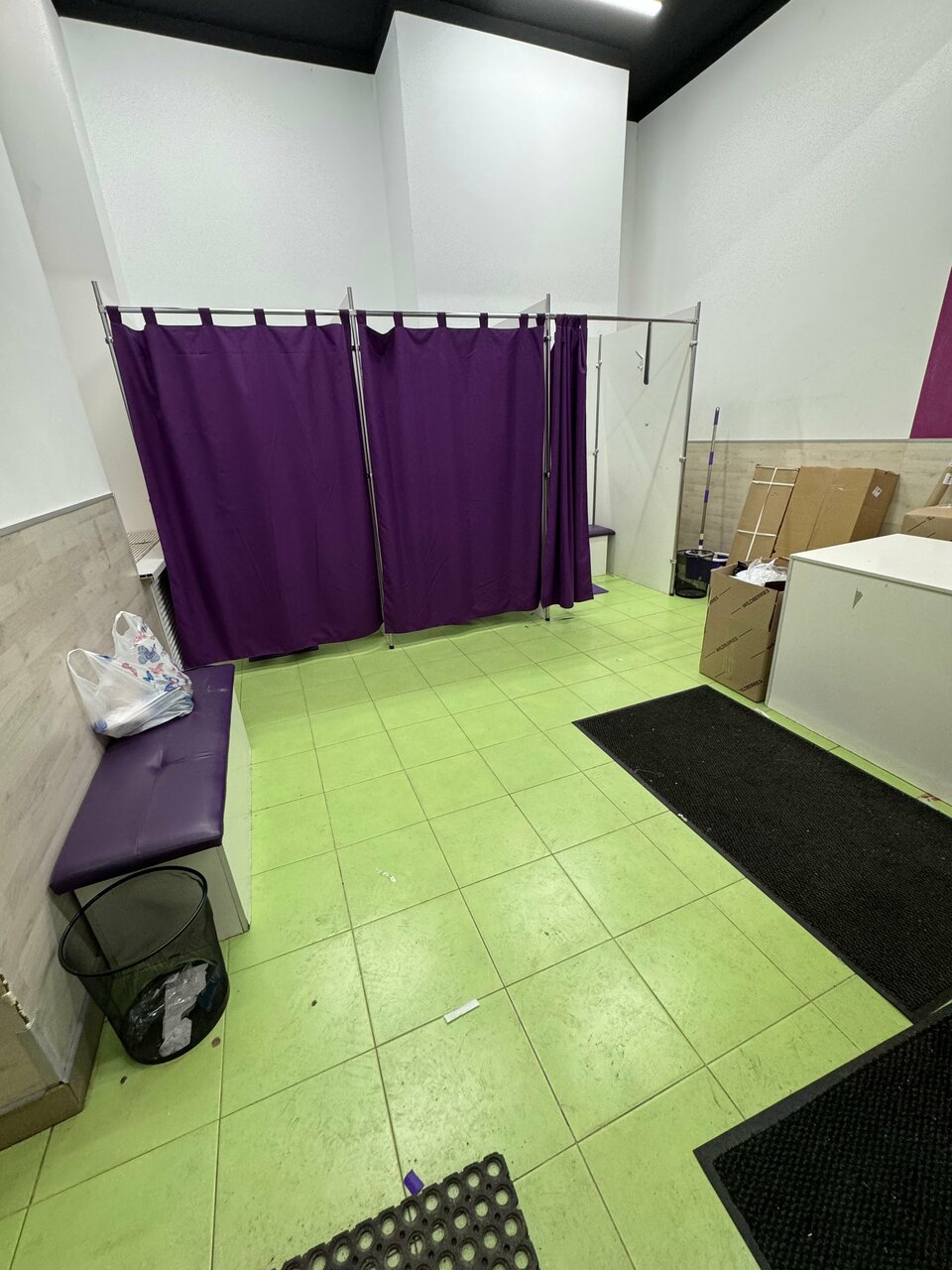 - Беспорядок (наваленные коробки в тамбуре)