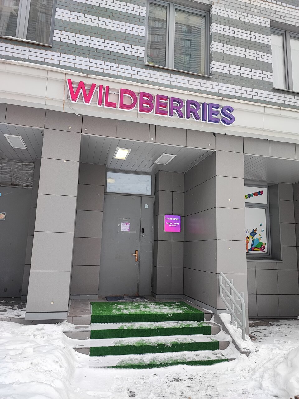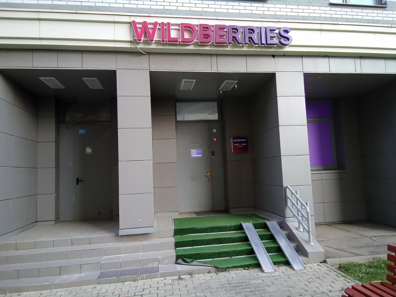 Стандартный пунк выдачи WB, все ровно так как и долдно быть, удобно чтотрядом с домом, удоьный вход, есть пандус, что важно.
