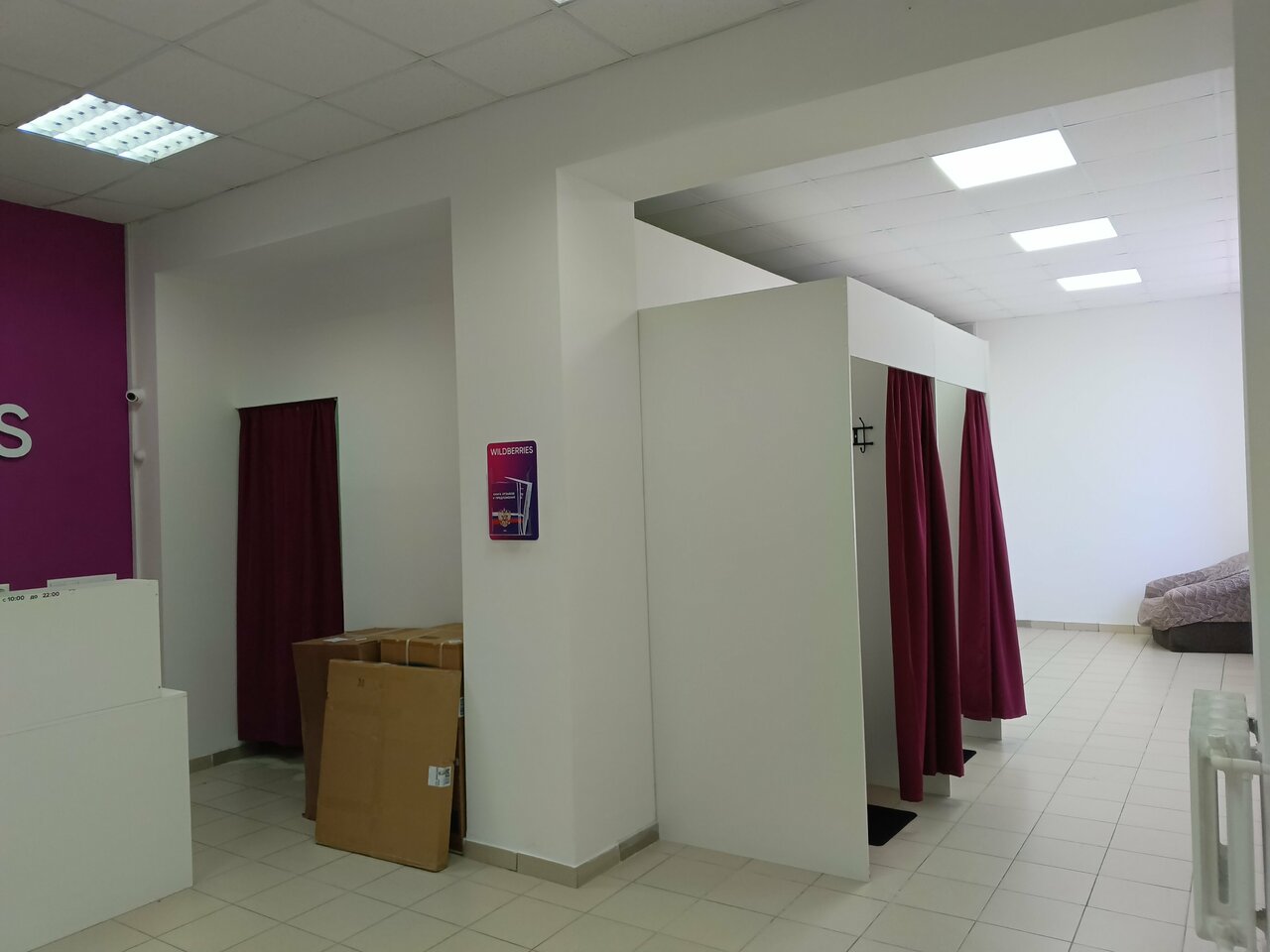- Просторные кабинки для примерки