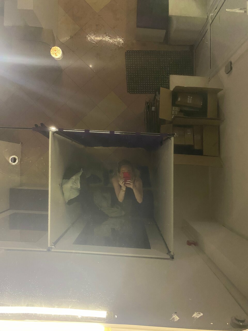 Зеркальный потолок во всем помещении!! тут же зона выдачи у которой стоят мужчины, и примерочная в которой переодеваются девушки. откуда я это знаю? Просто посмотрела наверх Переодеваются Дети, прикрытые девушки, подростки, пожилые люди, все под зеркальным потолком, как можно додуматься. Было бы смешно, если не было б так грустно