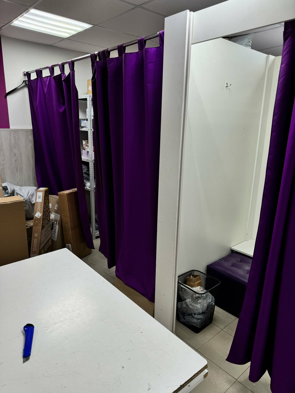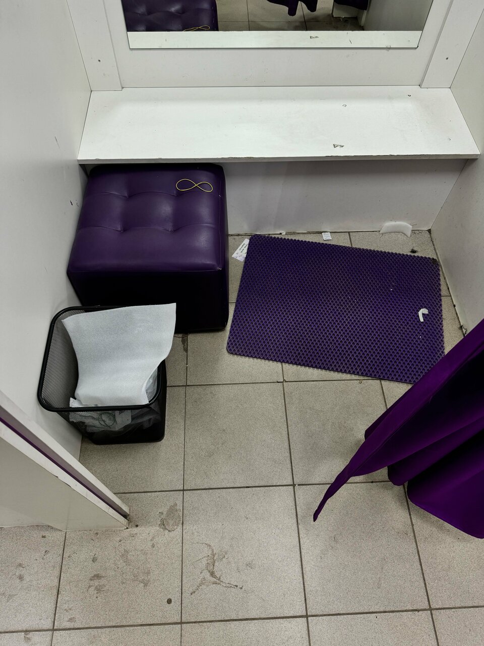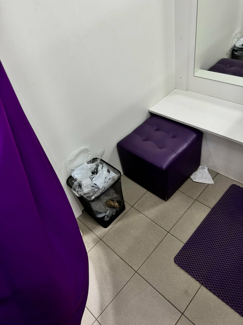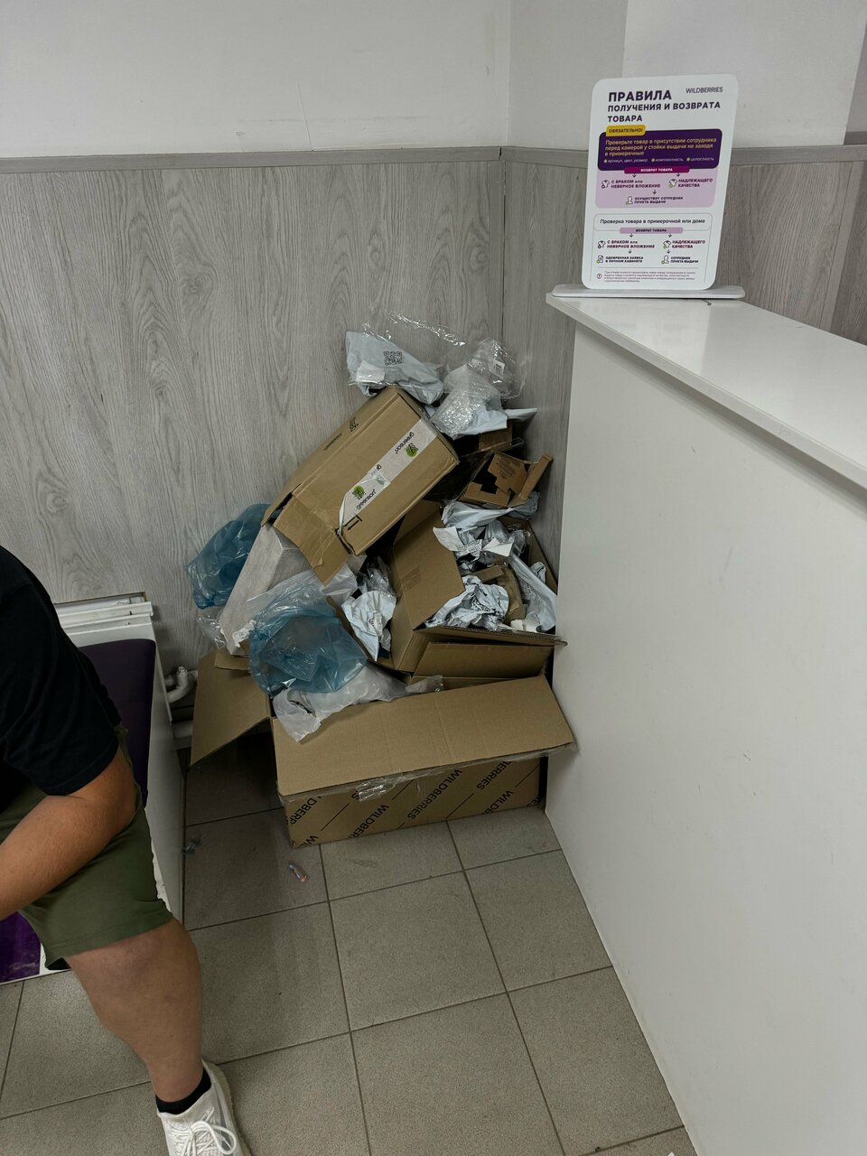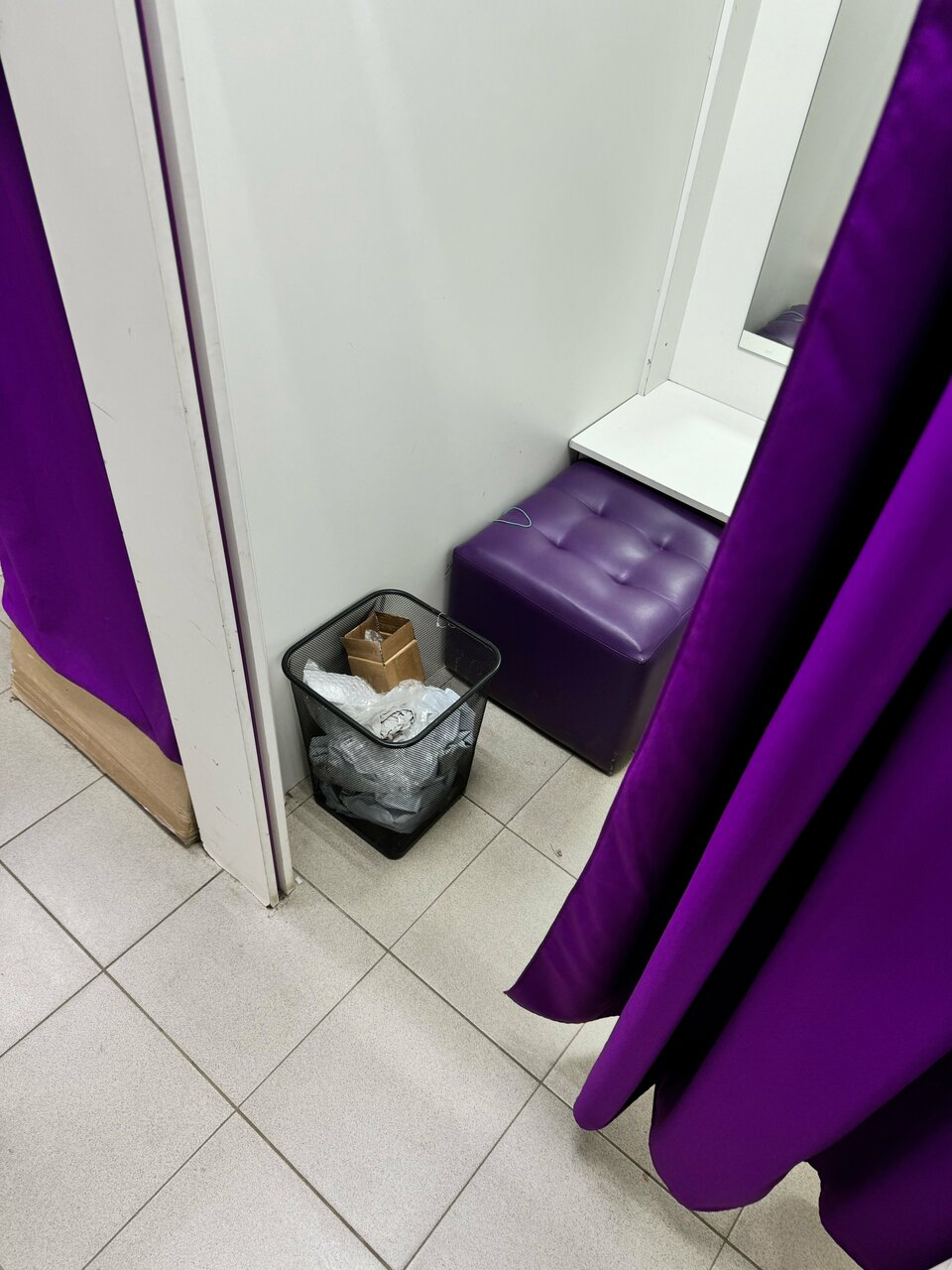Вот такой ужасный, грязный пункт выдачи. Все примерочные завалены мусором , Пол грязный, у стола администратора куча мусора огромная. Сотрудник хамила , есть видео подтверждение. С ее слов это официальный пункт WB и они делают все что хотят, им за это нет никаких штрафов. Они могут терять заказы и клиент должен ждать или приходить в следующий раз когда они найдут. Таких сотрудников надо увольнять, которые так вольяжно чувствуют себя на рабочем месте, которые не научились разговаривать и работать. Из двух товаров потеряли два товара Мы приходили три раза и только на третий раз нам отменили заказ.