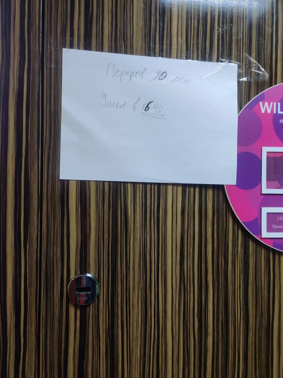 Сидим под дверью уже нескрлько человеу 15 минут – ни записки, ни информации на сайте работает ли пункт выдачи или нет…