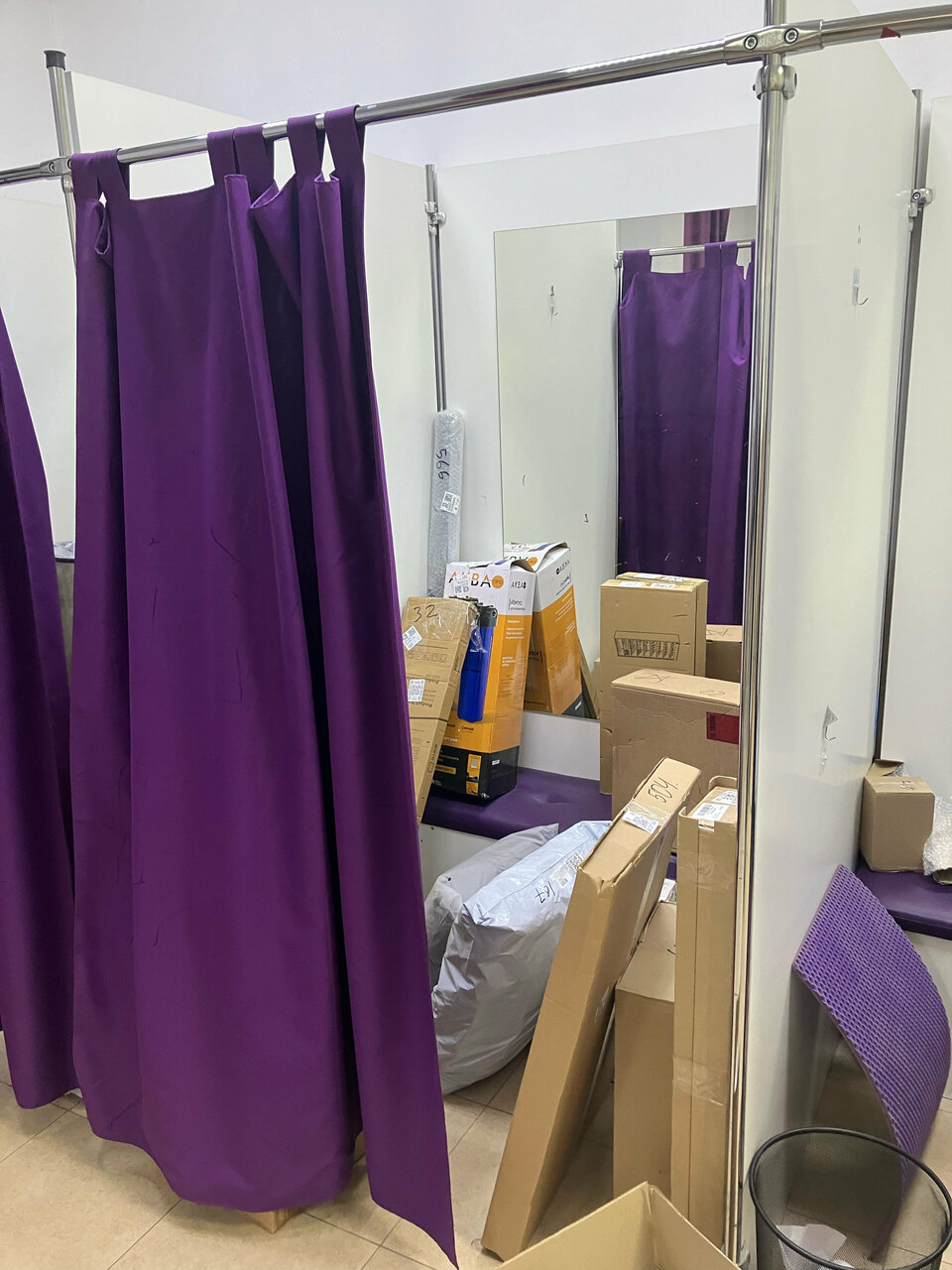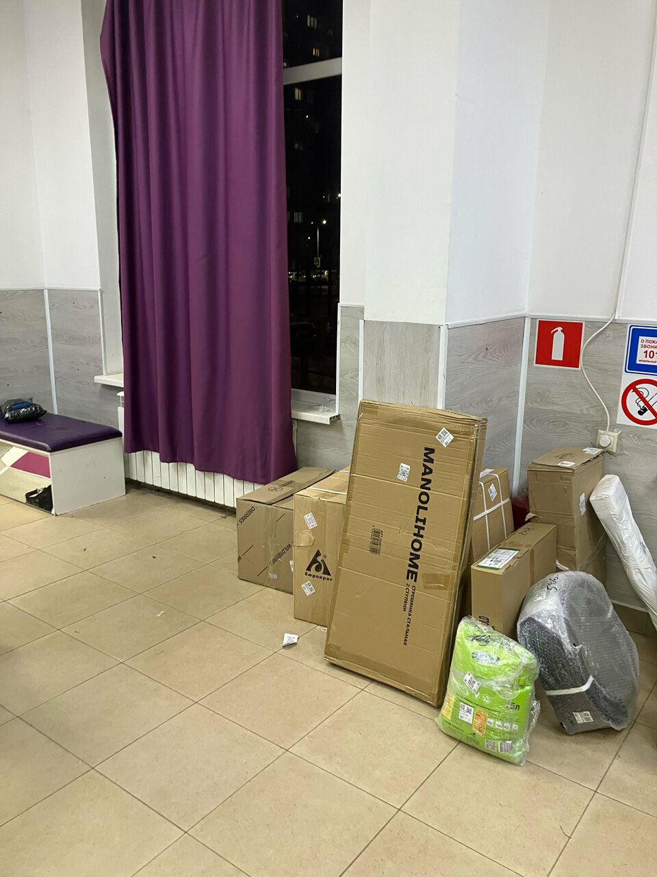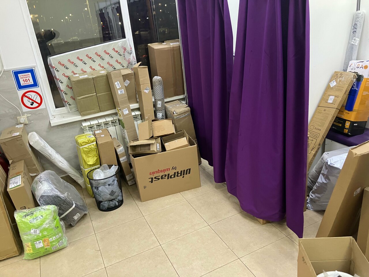 - Заставленный коробками клиентский зал