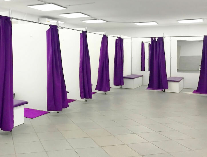 Обычный пункт выдачи с двумя примерочными кабинками в небольшом помещении, персонал приветливый.