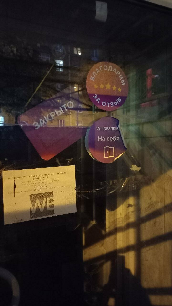 Даже одной звезды много Четвертый день пытаюсь забрать оплаченный заказ. Четвертый день закрыто в разное время. Служба поддержки не отвечает, мол все операторы заняты, уже больше суток. Предлагают заказать доставку курьером из пвз за 2 часа за 199 рублей, а у меня заказ на 350))) Бред какой-то Судя по мусору у двери, пункт давно закрыт, почему нет никакого объявления?!