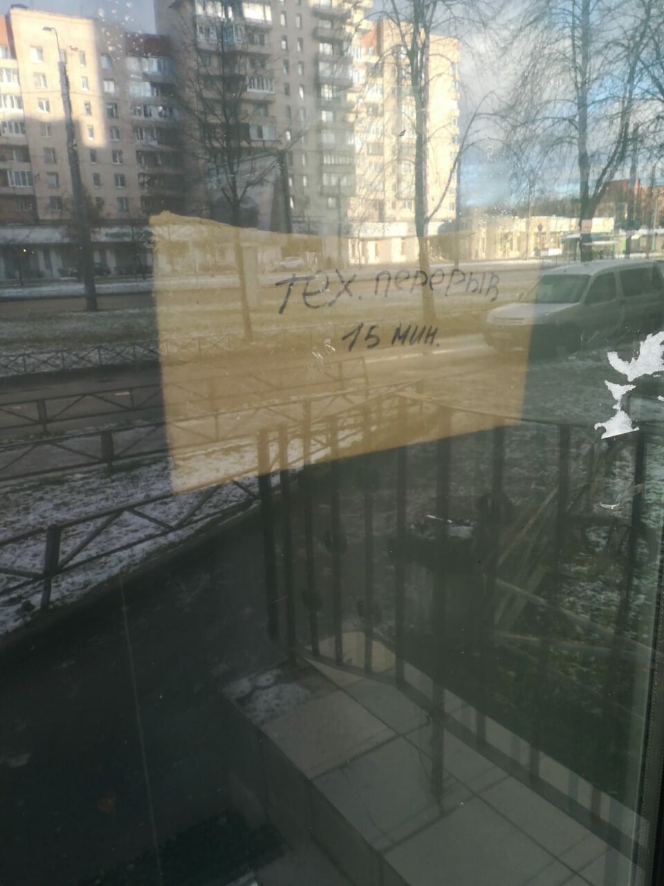 Сидим ждём пока откроют двери написали что не большой перерывчик долго не открывают мы уже замёрзли он уже скоро закроется