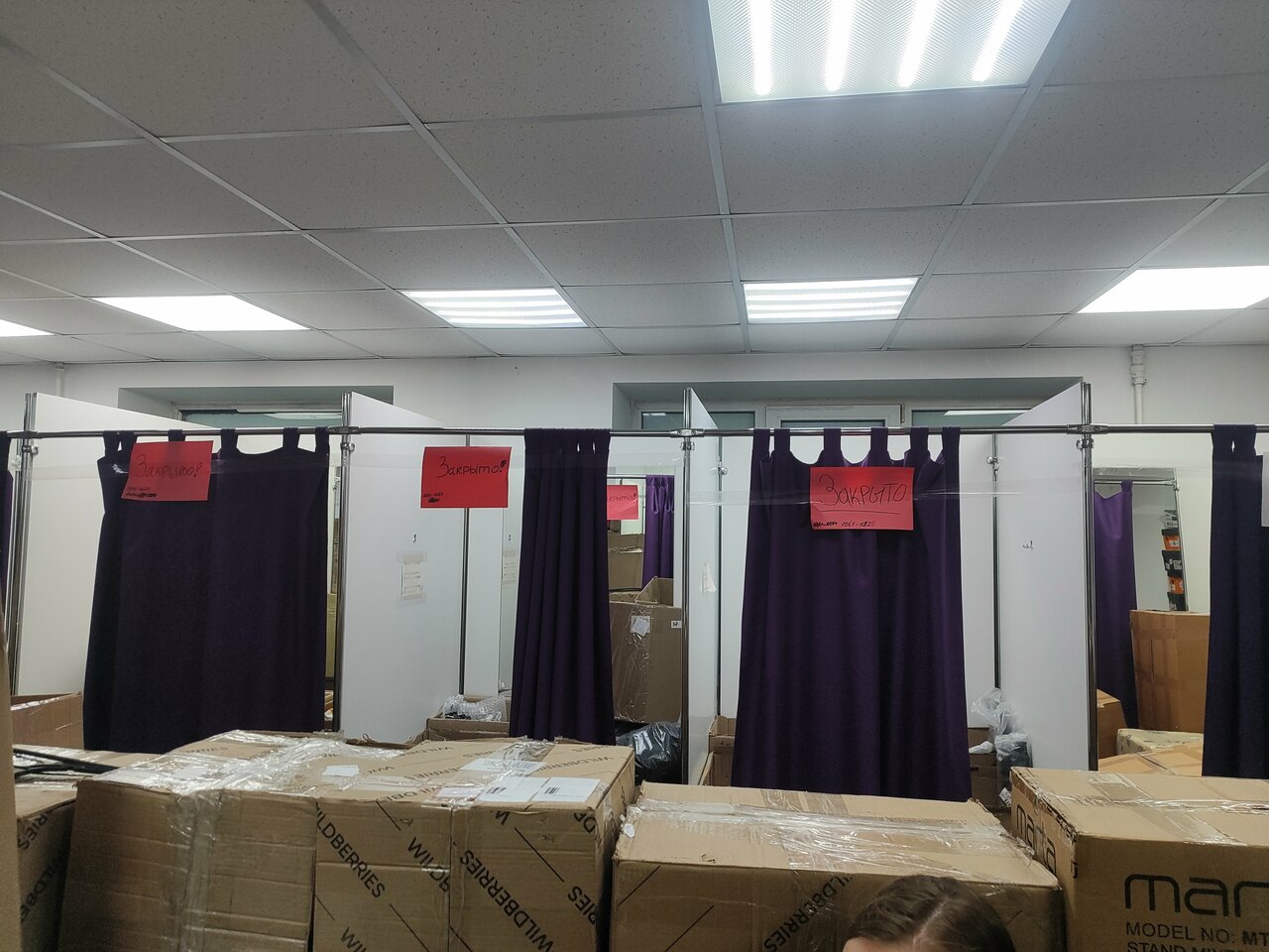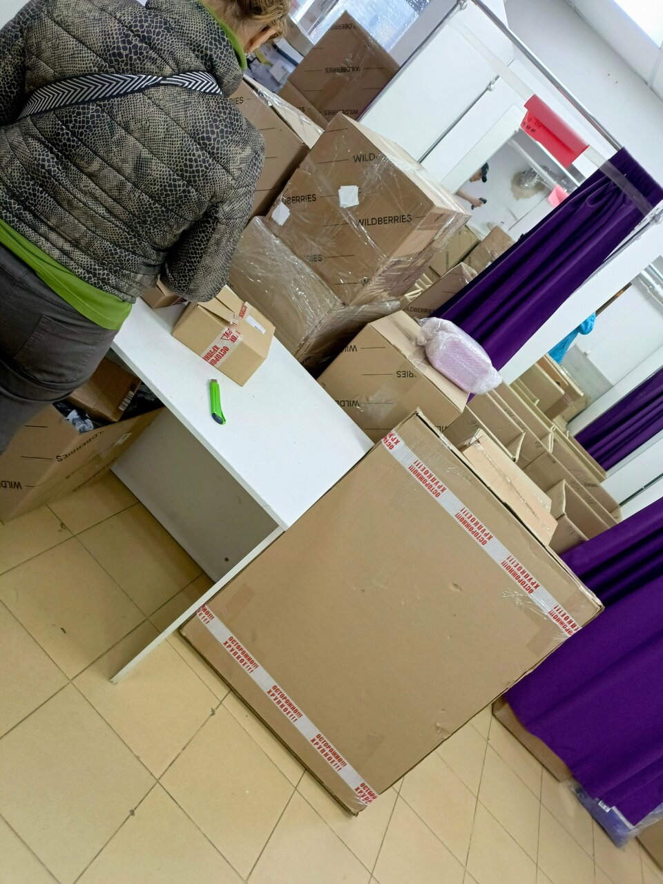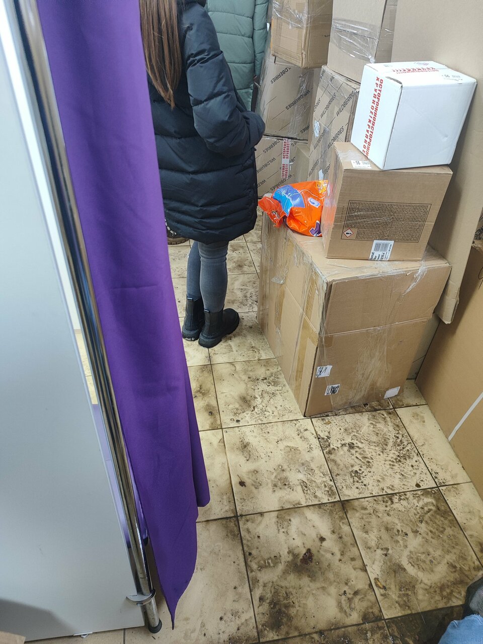 - Мало места для примерки (всё заставлено коробками)