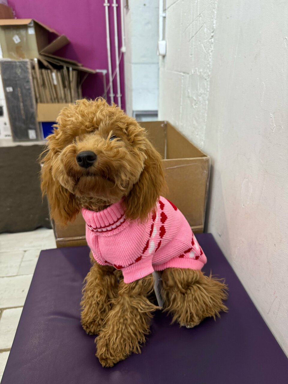 Пункт выдачи. Удобно, если вы рядом живете. Есть примерочная. Есть кресло для ожидания и даже пуфик, который любят дети
