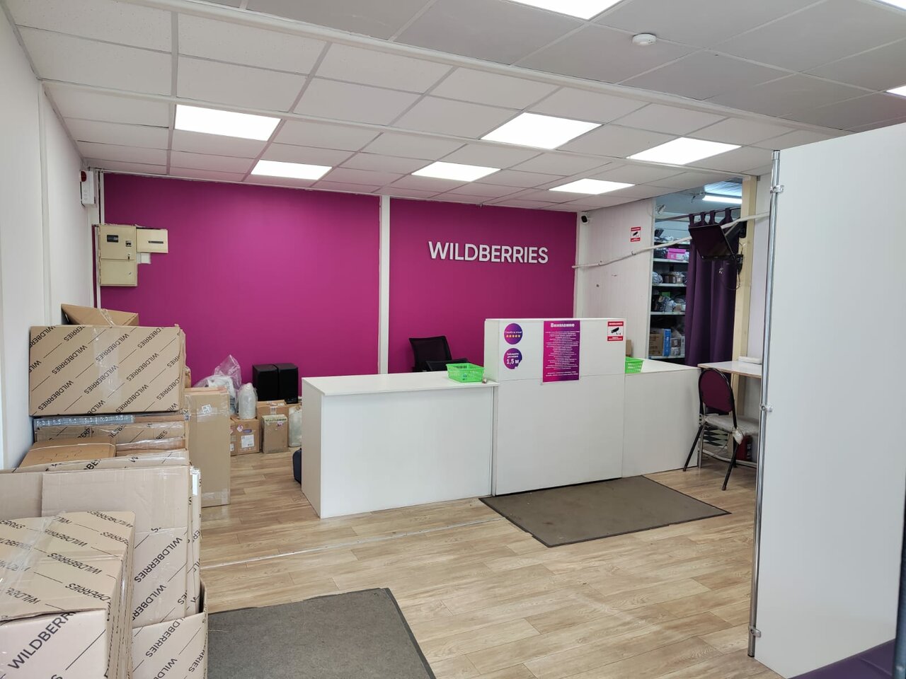 - Тесноватое помещение, много коробок в клиентской зоне