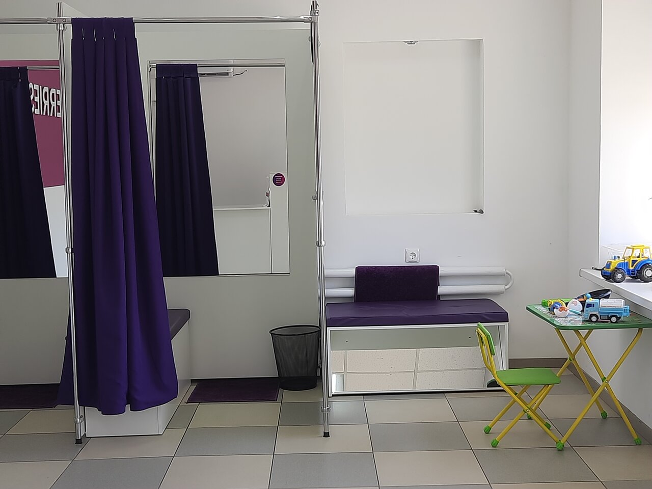 Сотрудники приветливые. Есть уголок для детей. Очередей нет. Можно спокойно мерить вещи. Работает сплит в жаркую погоду.